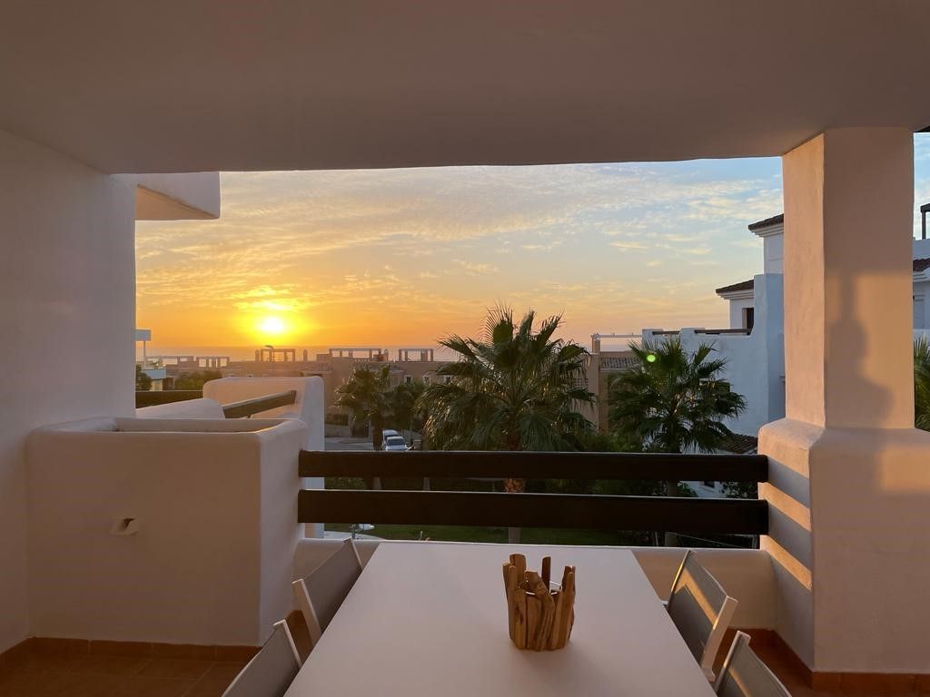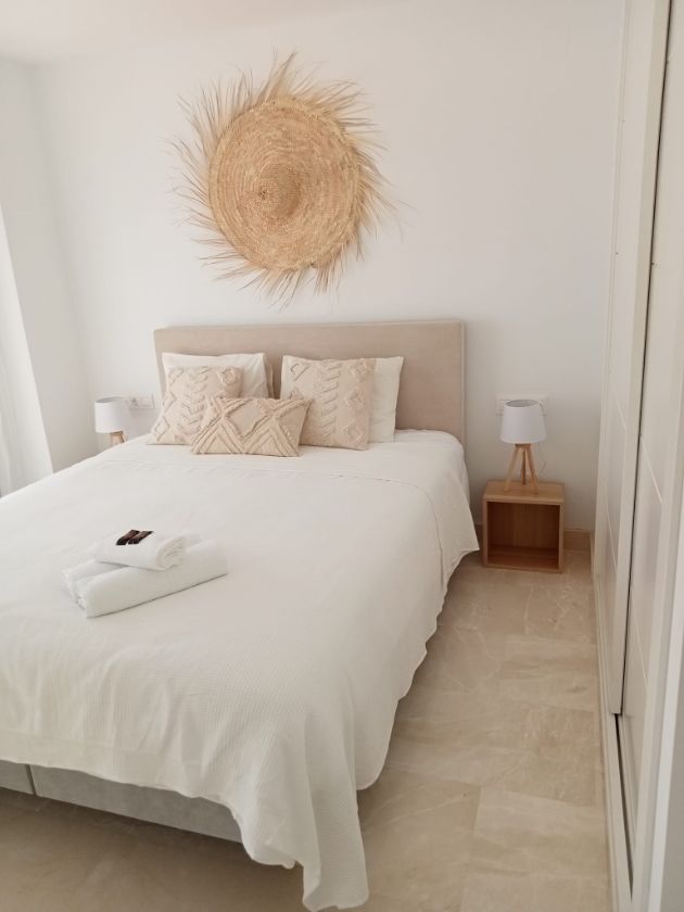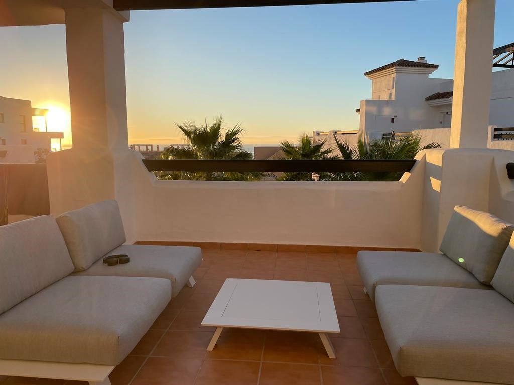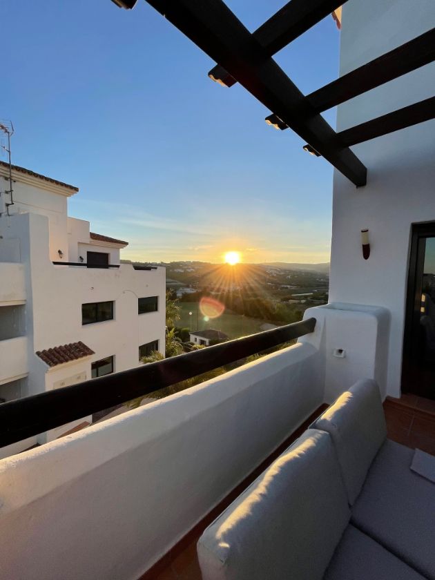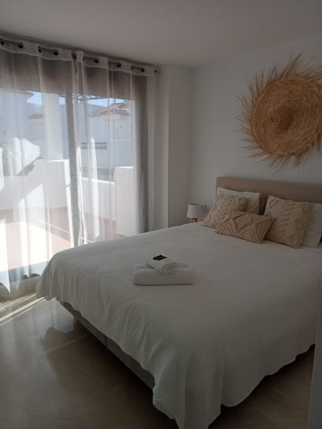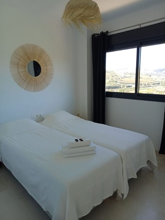 C’est un appartement luxueux de 90 m2 (2 chambres-2 salles de bain) à la décoration soignée avec vue imprenable aussi bien sur la mer que sur le golf Dona Julia et les montagnes de la Sierra Bermeja.